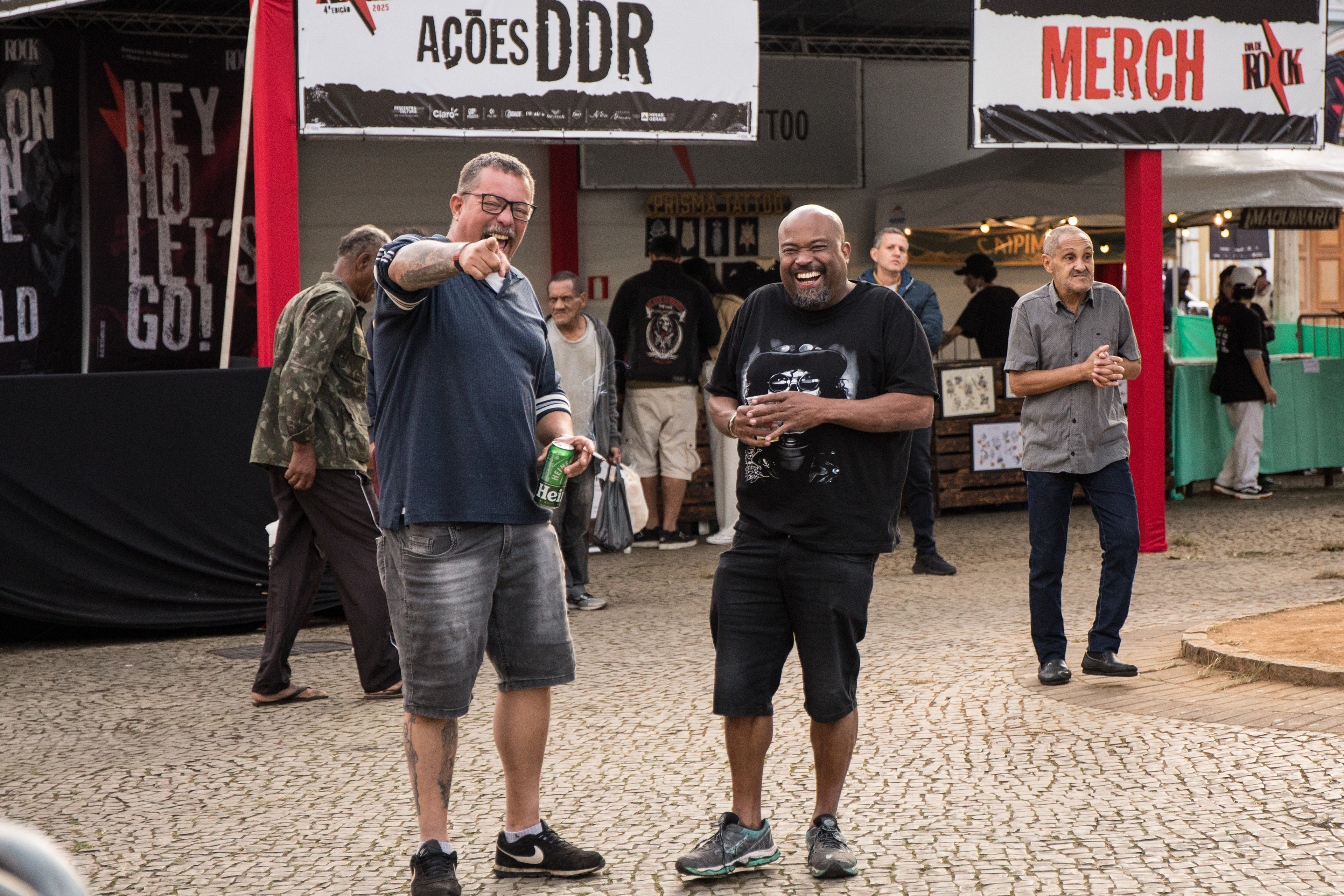 Experiências culturais: lojinha com produtos oficiais e espaço para o merch das bandas; e a ação de flash tattoo, em parceria com o estúdio Prisma Tattoo, que possibilitou ao público levar o Dia de Rock na pele.